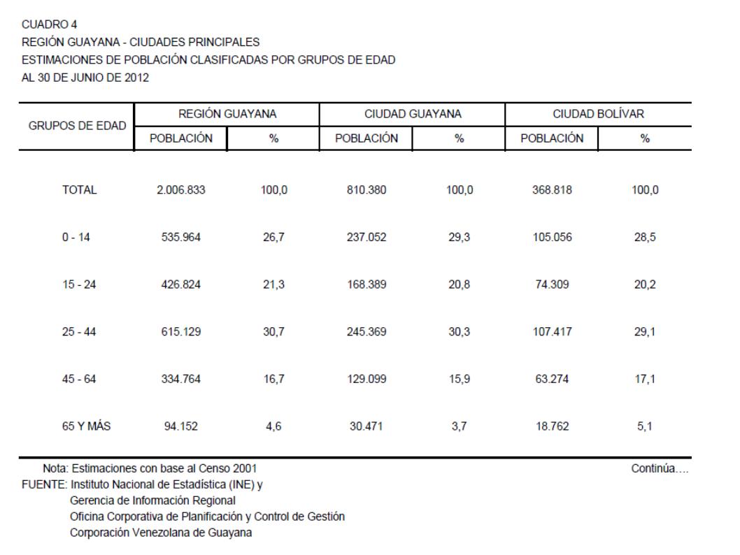 4. Ciudades Principales (Estimaciones De Población Clasificadas por Grupos de Edad al 30 De Junio de 2012)