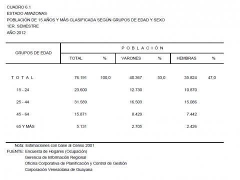 6.1 Estado Amazonas (Población Total Clasificada Según Grupos De Edad y Sexo Año: 2012)